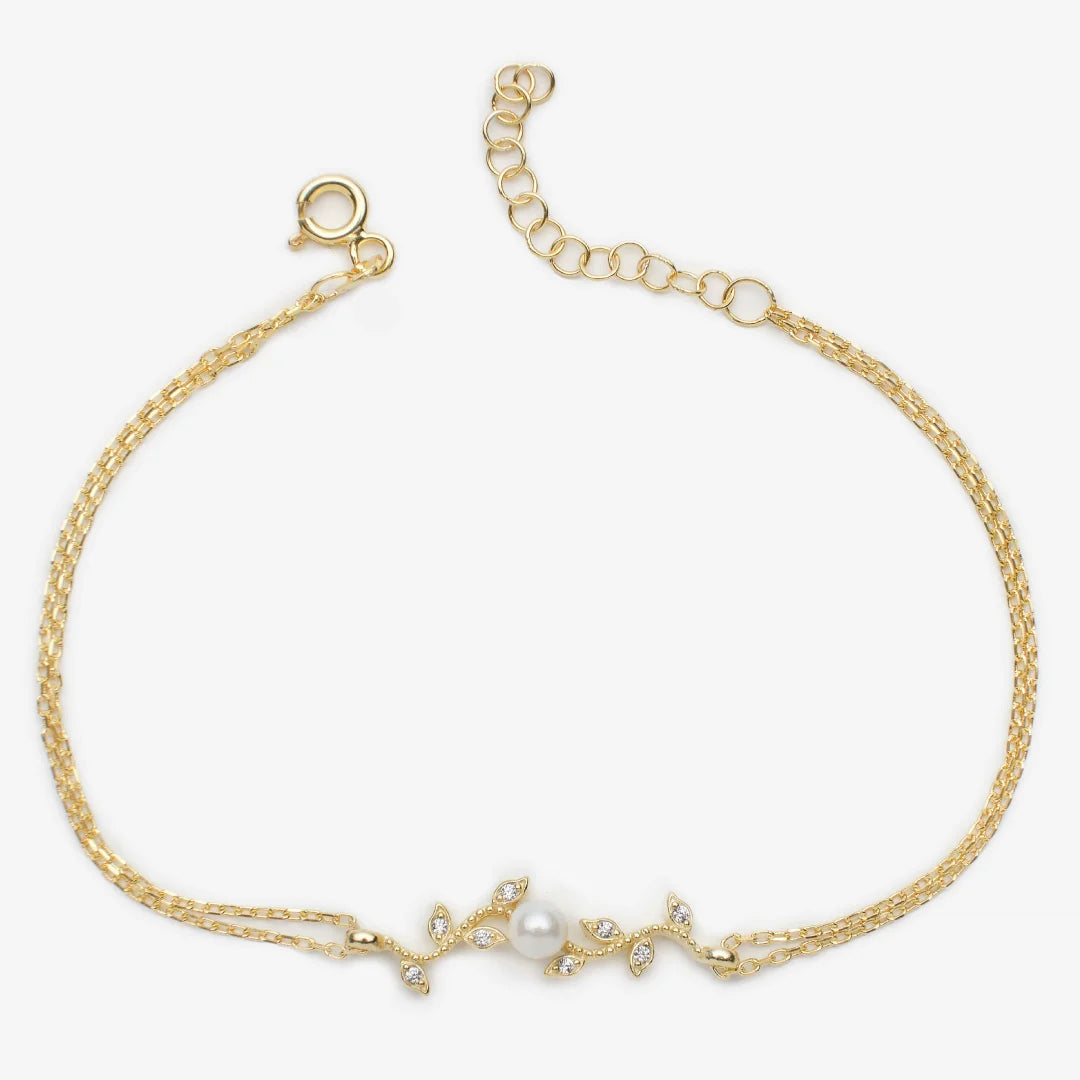 Diamantmontur mit Perle des Frühlings Silber Gold Armband LMLBL01361