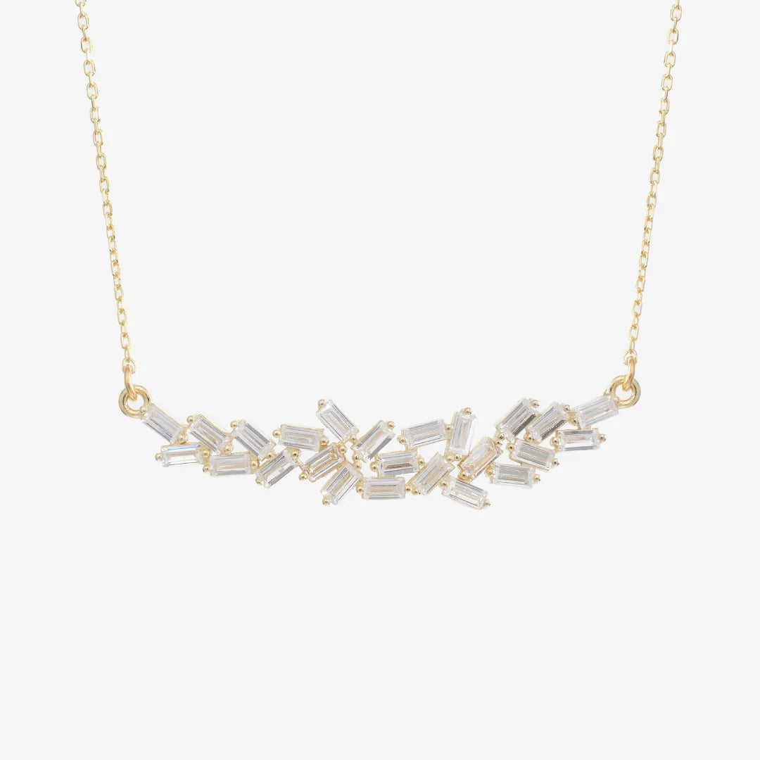 Baguette Blume Gold Silber Halskette LMLKL02735-GO