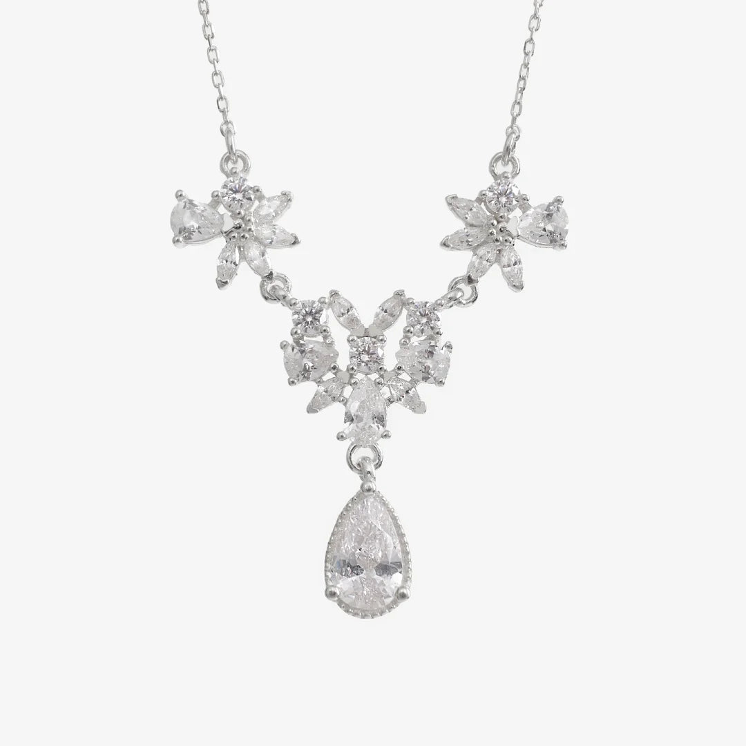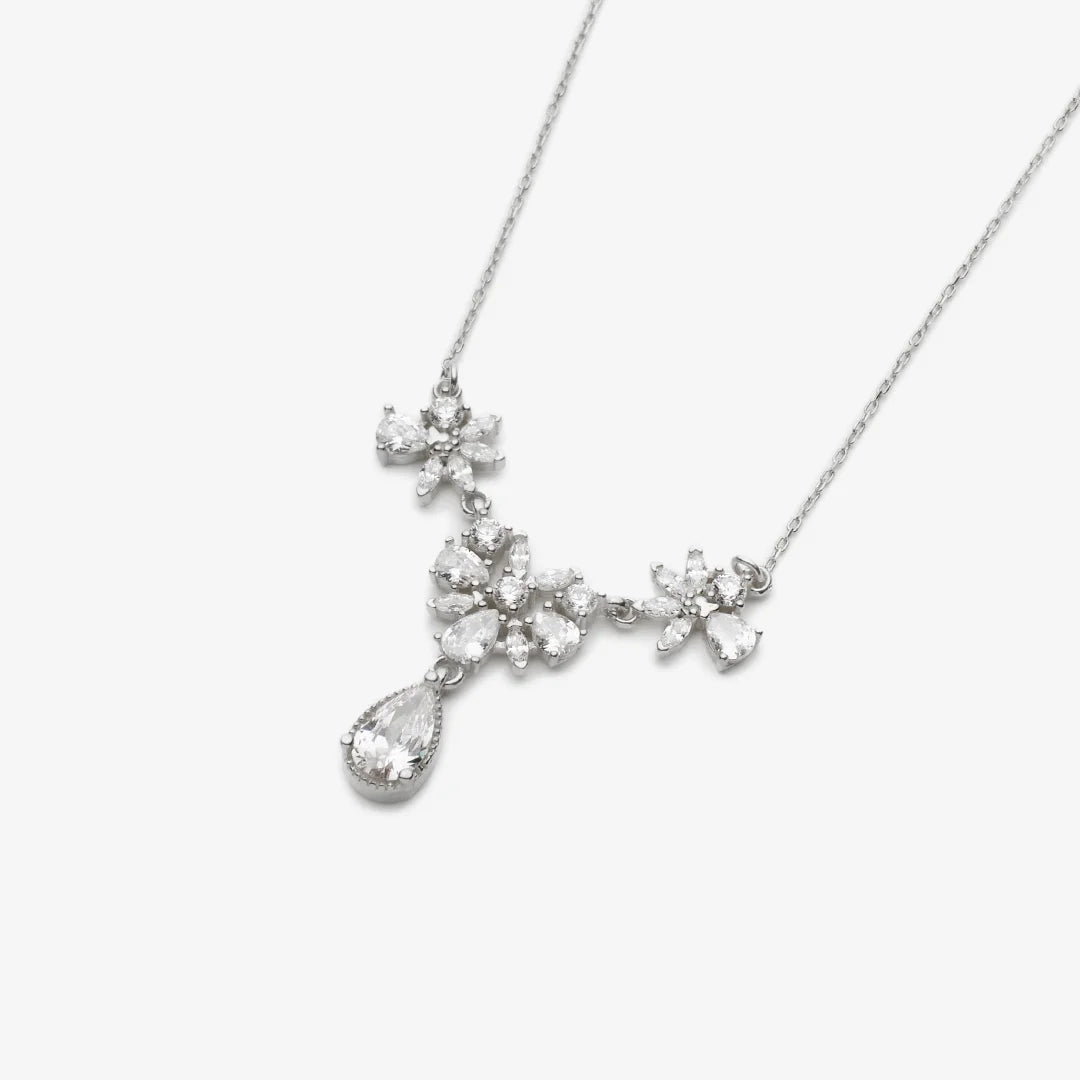 Diamantmontur funkelnde Tropfen Silber Halskette LMLKL03180-RH