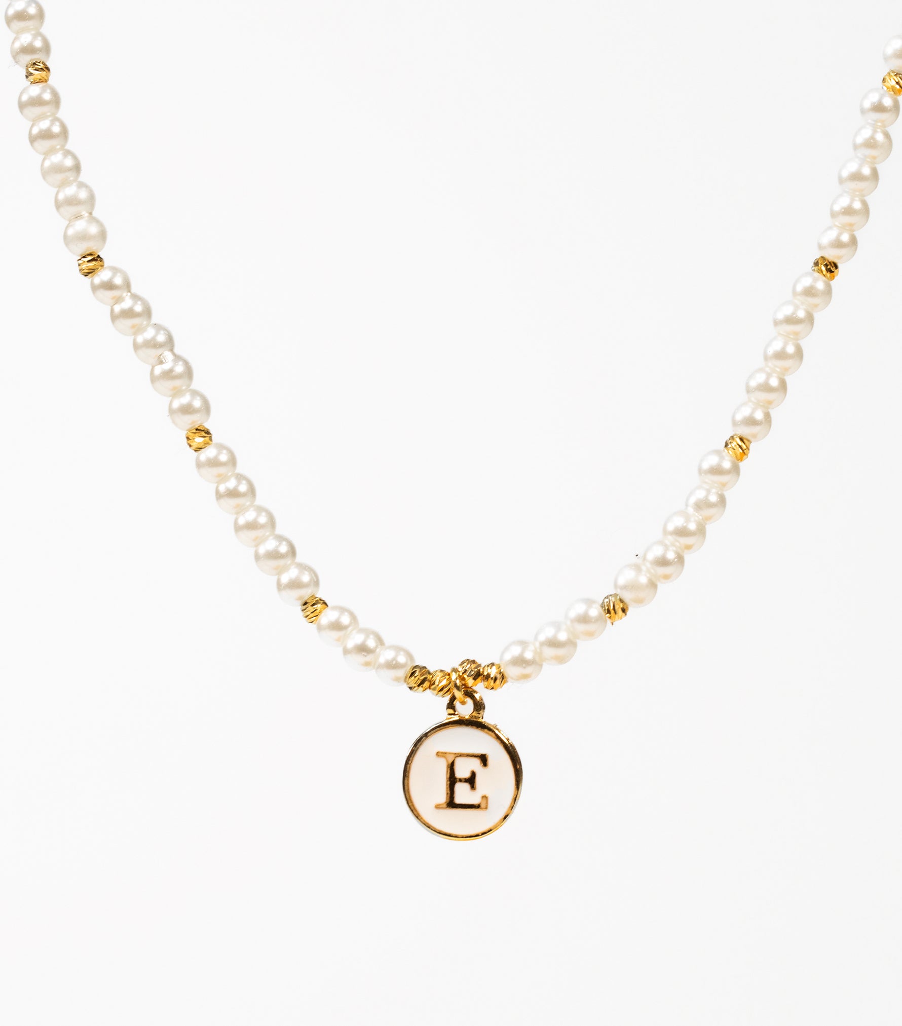 E-Perle – Elegante Perlenkette mit rundem Buchstabenanhänger E