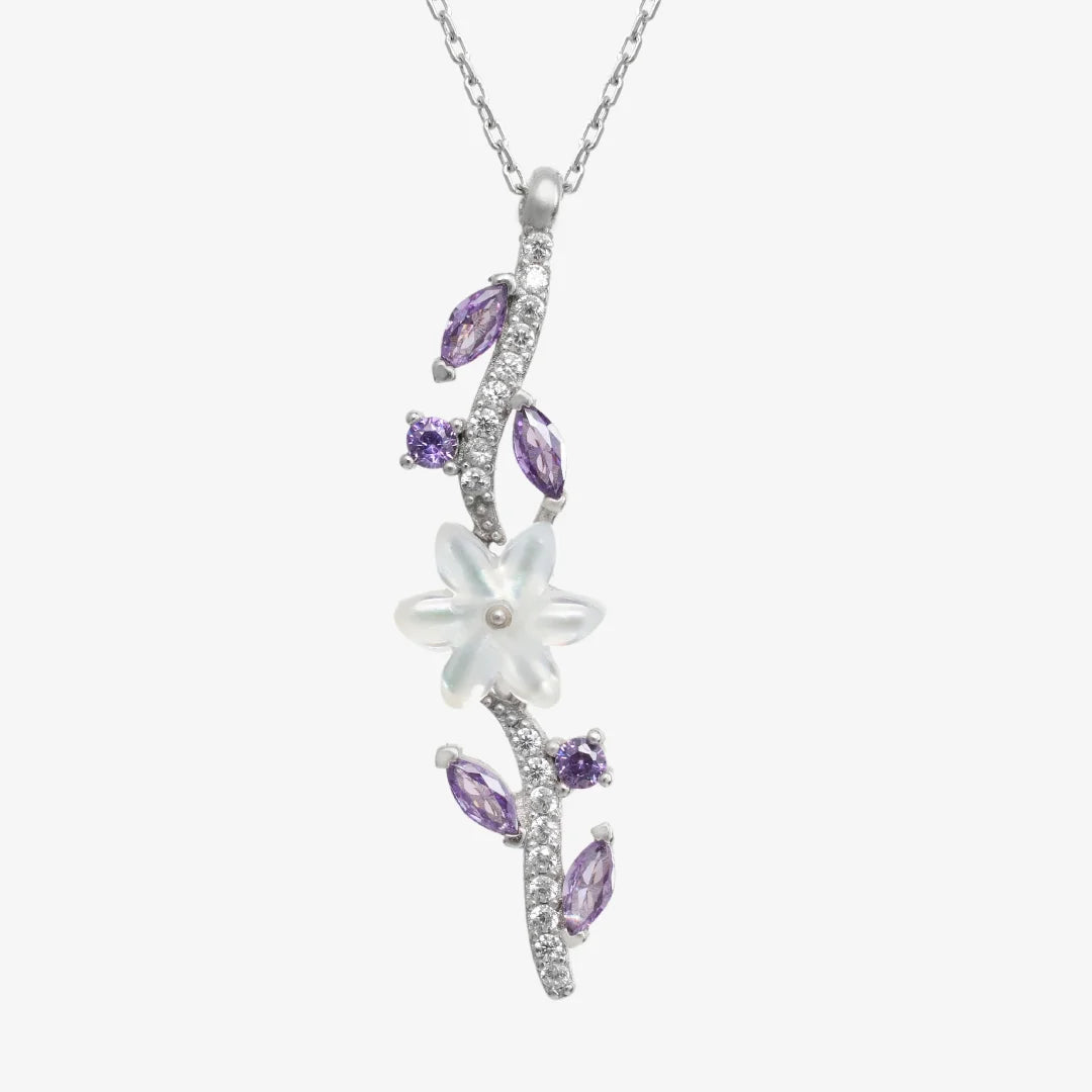 Elegante mit Amethyst Steinen Silber Halskette LMLKL03092-RH