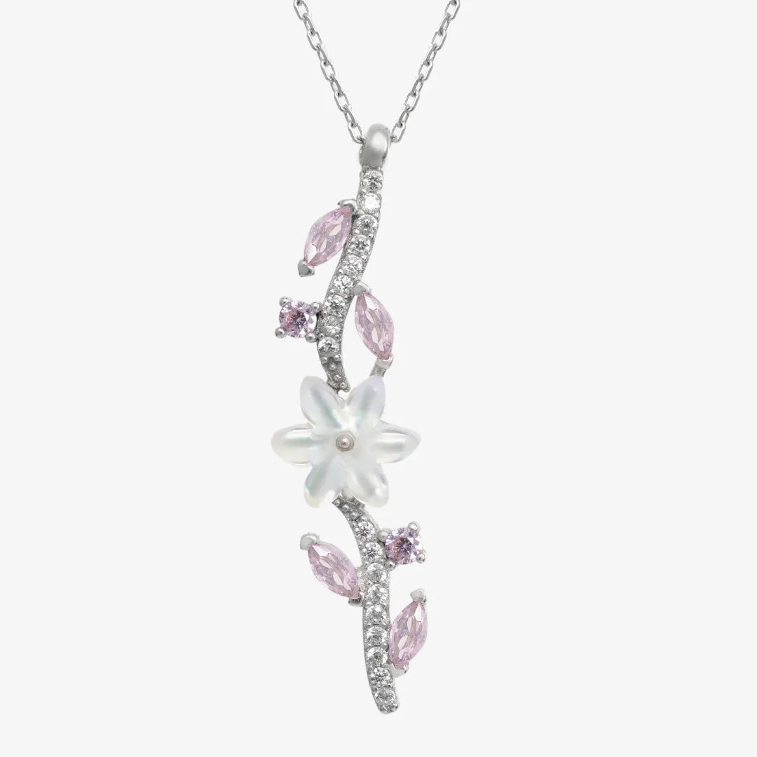 Elegante mit Rosa Steinen Silber Halskette LMLKL03090-RH