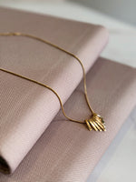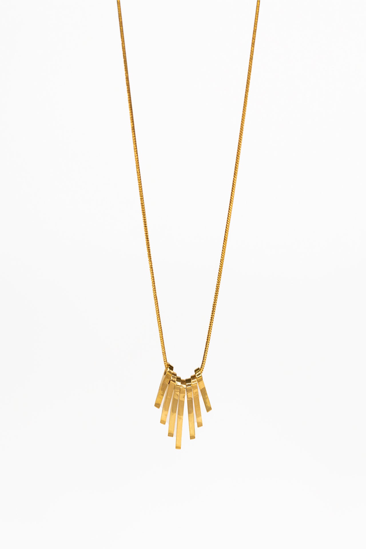 Der geometrisch geschichtete Anhänger in Goldoptik verleiht der Kette eine besondere Ausstrahlung. Ob im Alltag oder zu besonderen Anlässen – dieses Schmuckstück ist vielseitig kombinierbar und setzt dezente, aber wirkungsvolle Akzente.