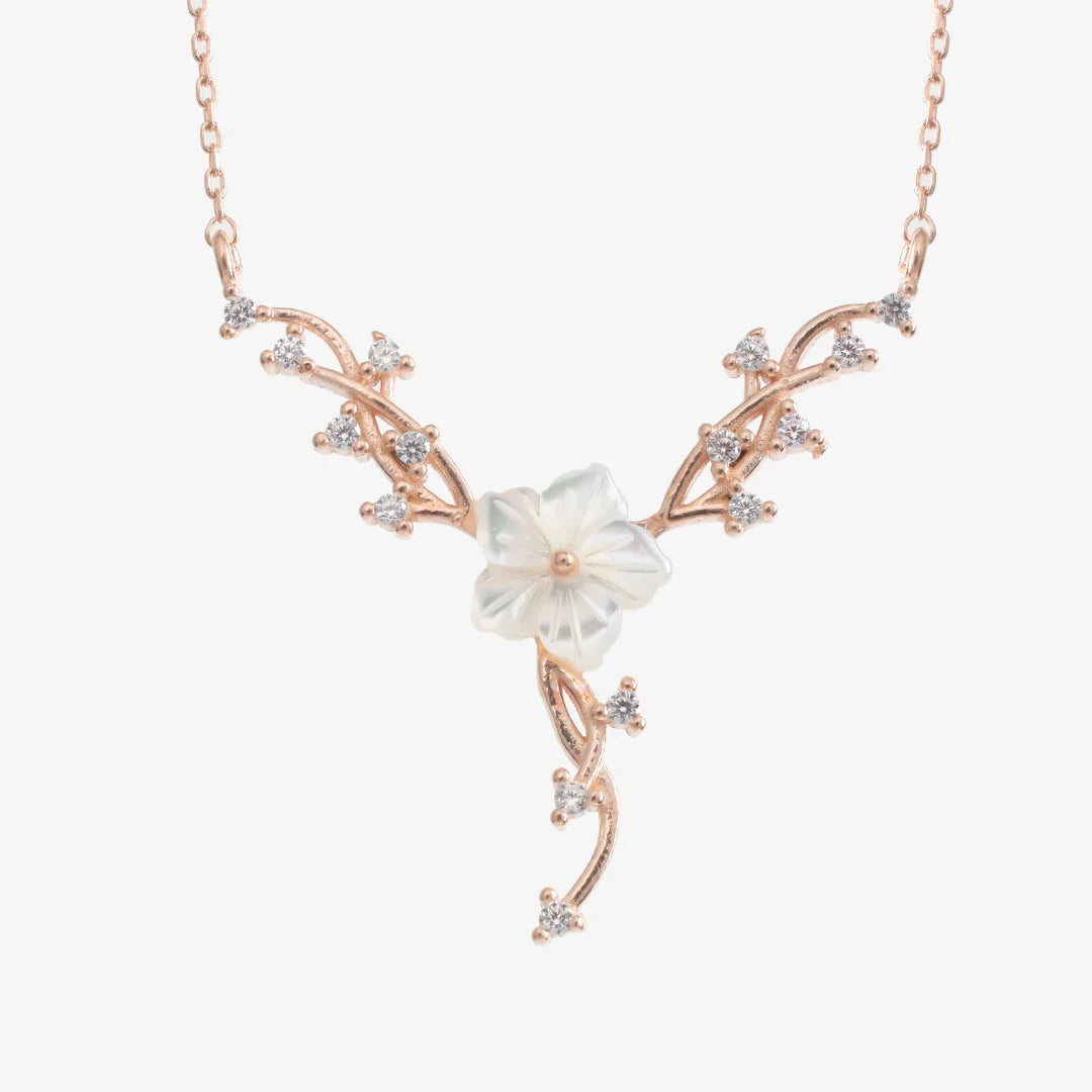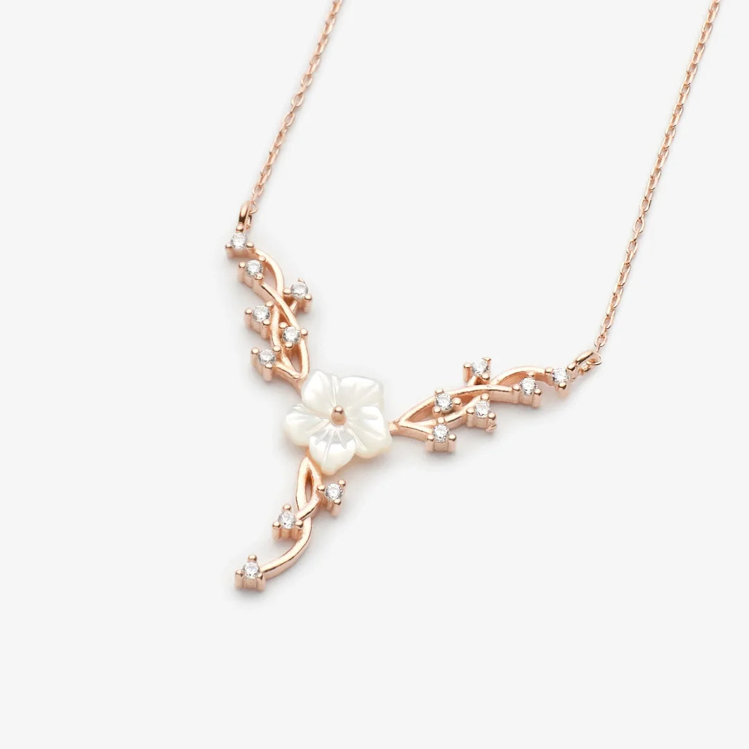 Magnolie und Efeu Rose Silber Halskette LMLKL03073