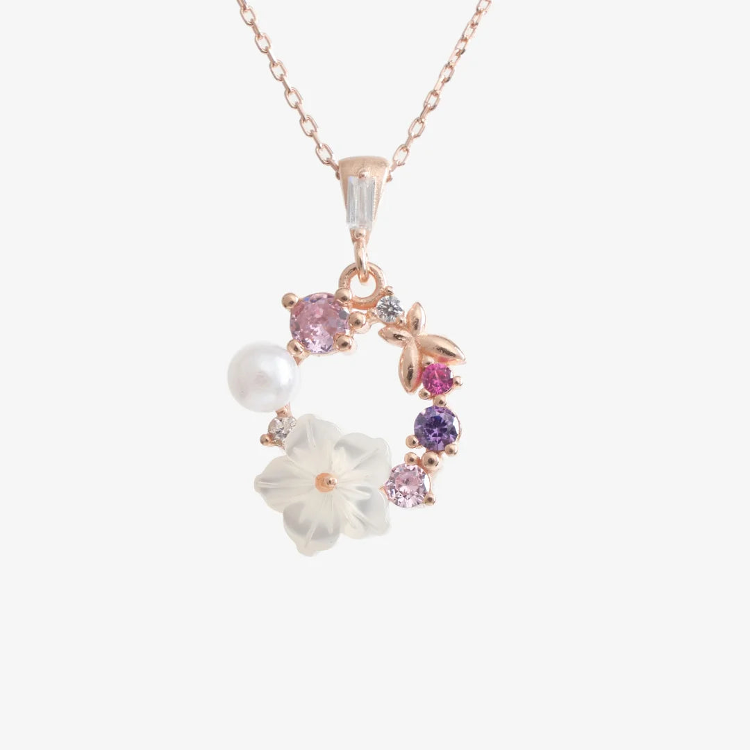 Weiche Blumen Rose Silber Halskette LMLKL02798