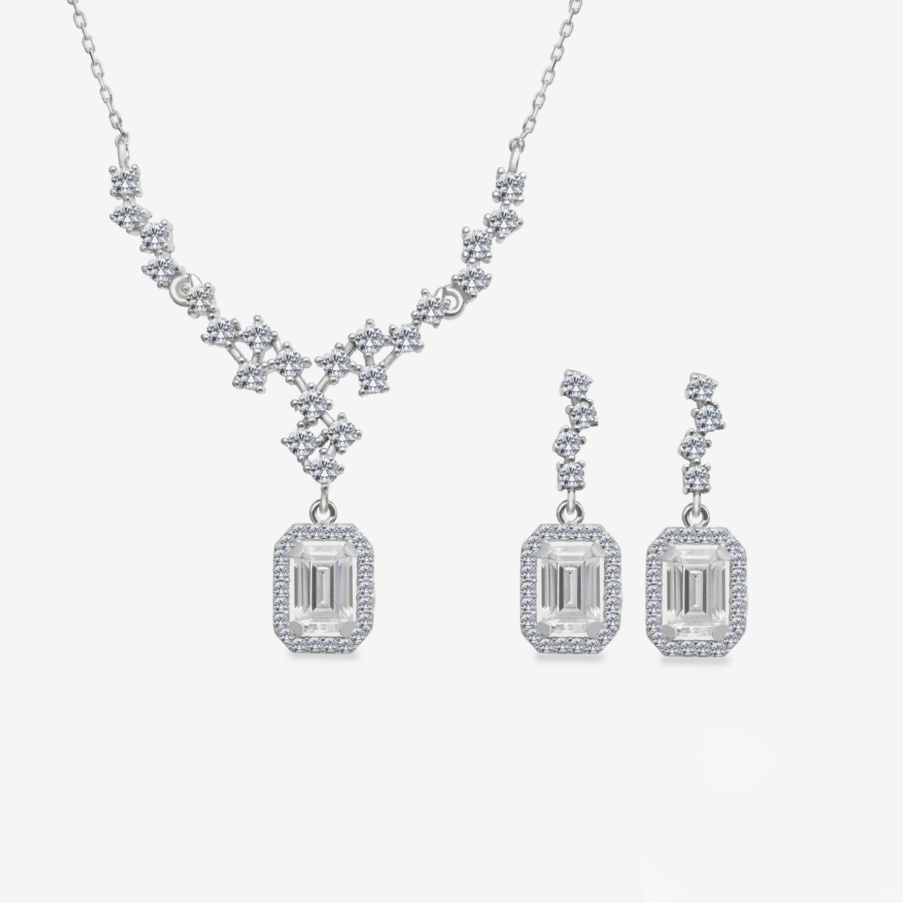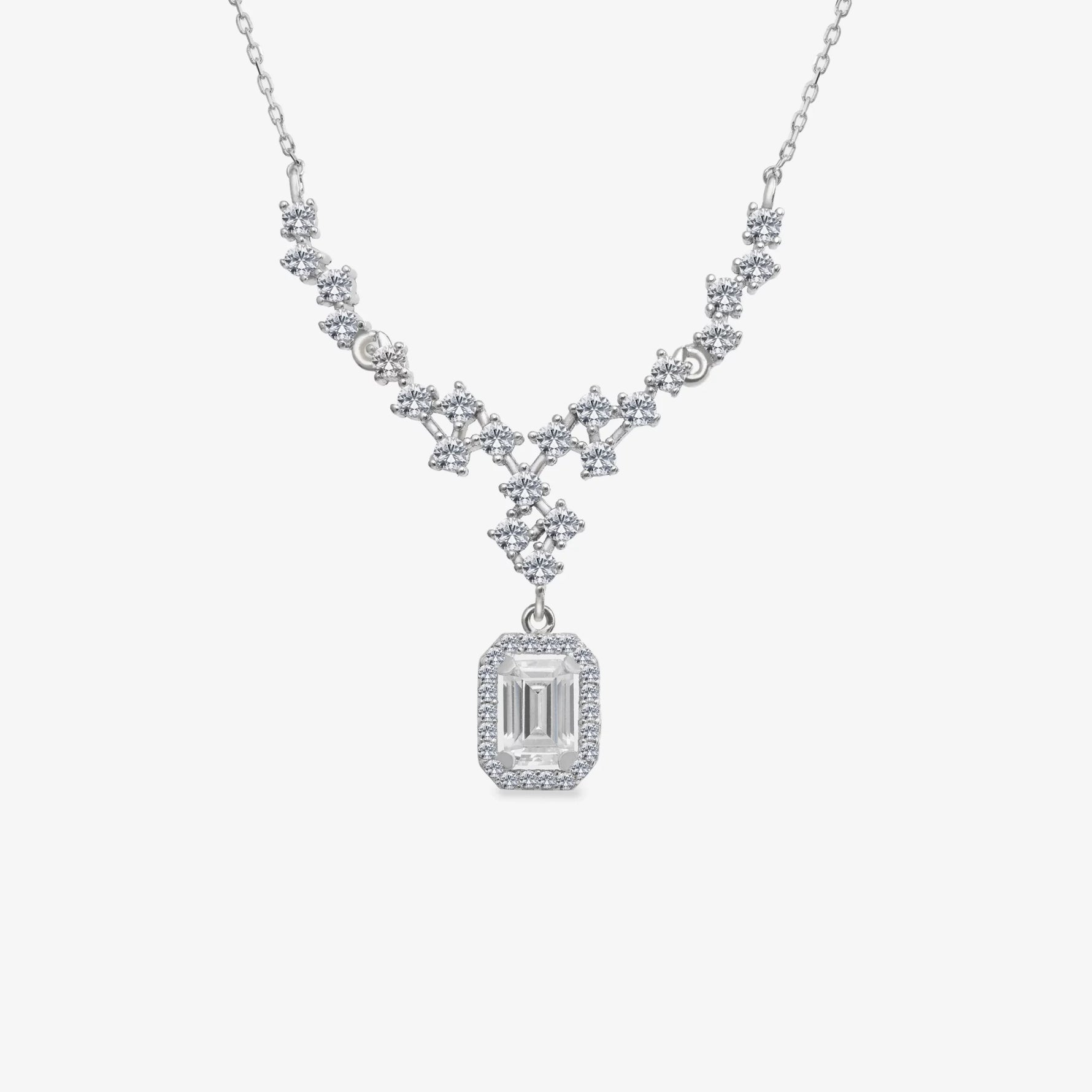 Diamantmontur Baguette-Glanz Silber Halskette LMLUST00472