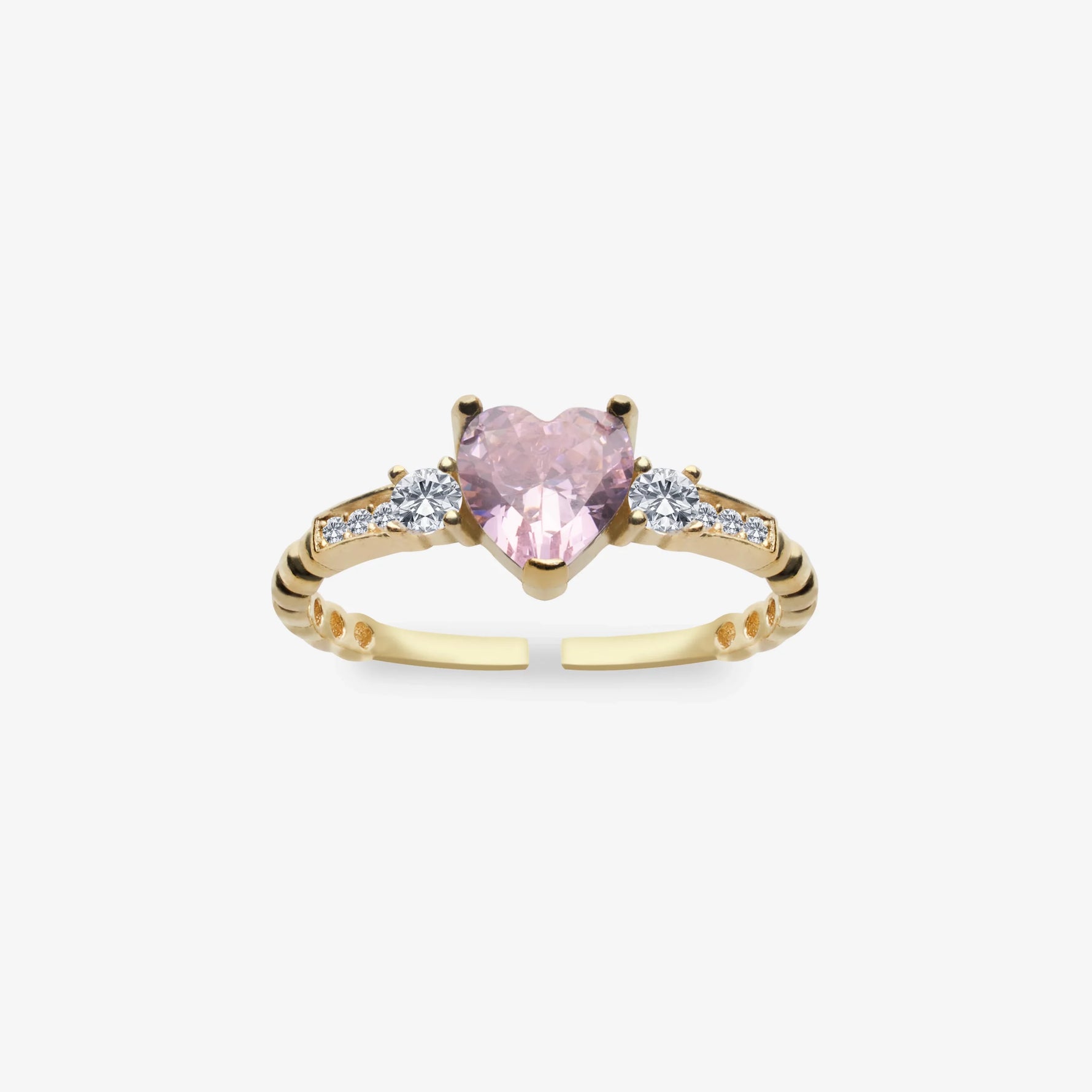 Funkelndes Herz Rosa solitär Gold Silber Ring LMLYZK00631-GO